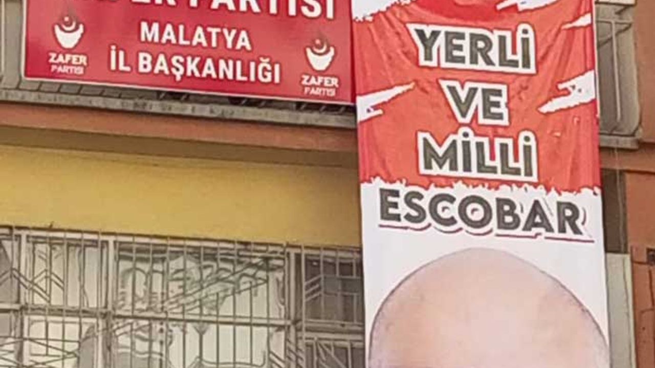 Zafer Partisi Malatya İl Başkanı Turgut Şahin ve 2 il yöneticisi hakkında 'Yerli ve Milli Escobar’ yazılı pankart nedeniyle açılan davada, “kamu görevlisine hakaret” suçundan adli para cezası verildi.