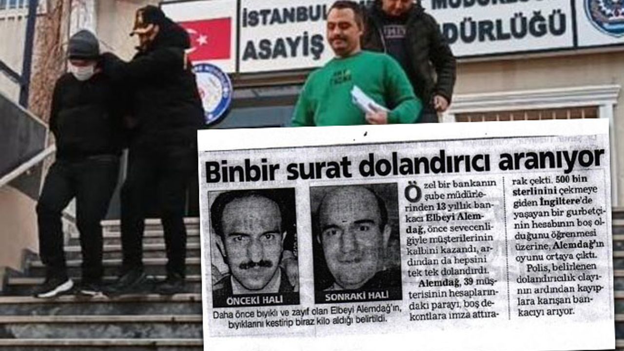 İstanbul'da bir banka şubesinde müdür olarak çalışırken 4,5 milyon dolar ve 500 bin sterlin parayı zimmetine geçirdiği suçlamasıyla 19 yıldır firari olarak aranan ve sık kılık değiştirdiği için 'binbir surat' lakabıyla tanınan 61 yaşındaki Elbeyi Alemdağ, yakalandıktan 12 gün sonra tahliye edildi.