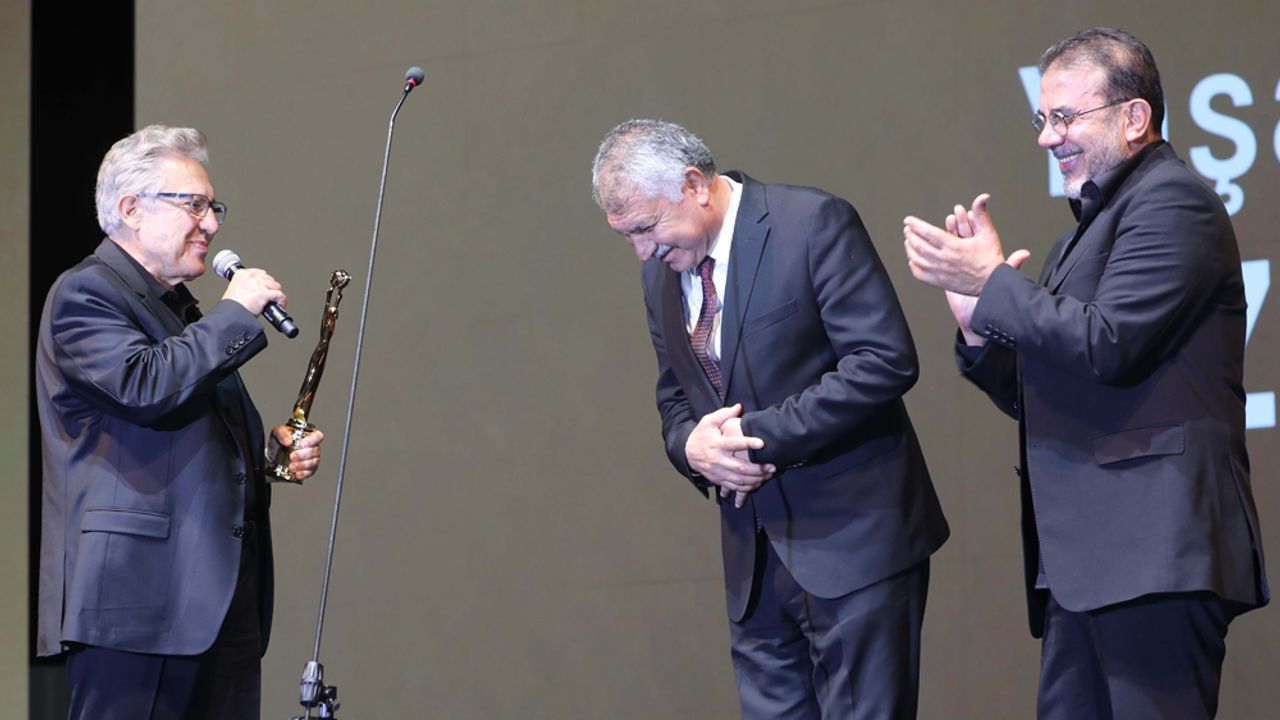 Daha sonra Zülfü Livaneli’ye Altın Koza Yaşam Boyu Onur Ödülü’nü, Adana Büyükşehir Belediye Başkanı Zeydan Karalar ve Festival Yürütme Kurulu Üyesi Nebil Özgentürk takdim etti.